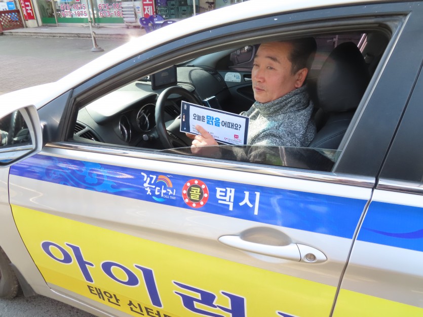 태안 택시기사님들과 터미널에 있는 시민들을 대상으로도 마스크와 스티커 지급을 통해 폭넓은 캠페인을 진행하였습니다.