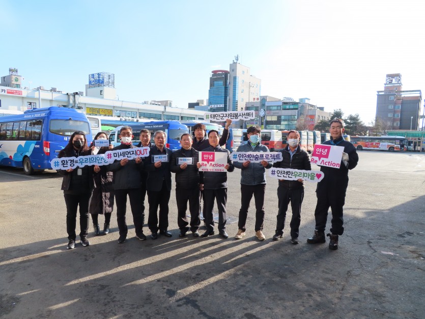 태안군자원봉사센터에서는 코로나바이러스와 미세먼지에 대응하기 위한 안녕리액션캠페인의 일원으로