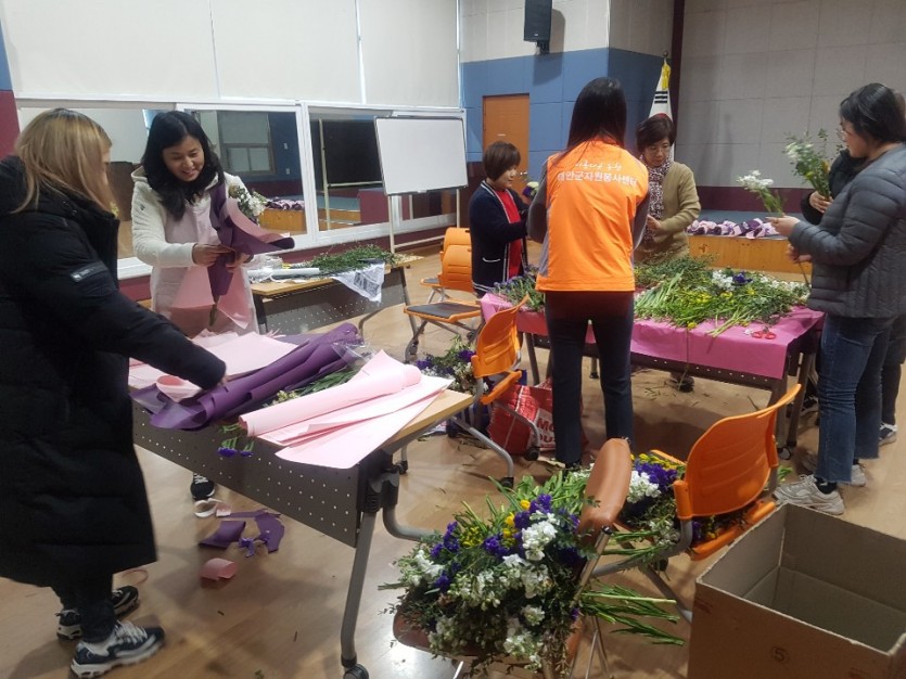태안군자원봉사센터는 코로나19로 인하여 화훼농가의 경제적 협력방안 사업으로 꽃다발을 제작하여 6.25참전용사 등 주변의 소외계층에게 전달하는 나눔봉사활동을 진행하였습니다.