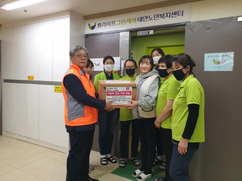 바이러스에 취약한 어르신들의 건강을 위해 면마스크를 전달 하였고, 요양원 직원들과 어르신들께 제공해 드렸습니다.