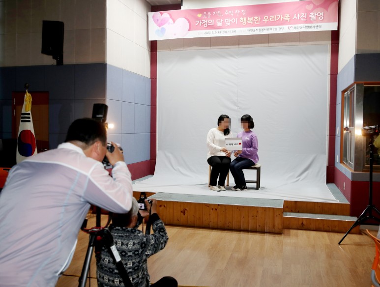 지난 5월 2일 태안군자원봉사센터에서는 관내 취약계층 10가정을 대상으로 가족사진 촬영과 아크릴 액자를 전달하는 ‘추억한장ㆍ웃음가득 가족사진 촬영’ 봉사를 진행했습니다.